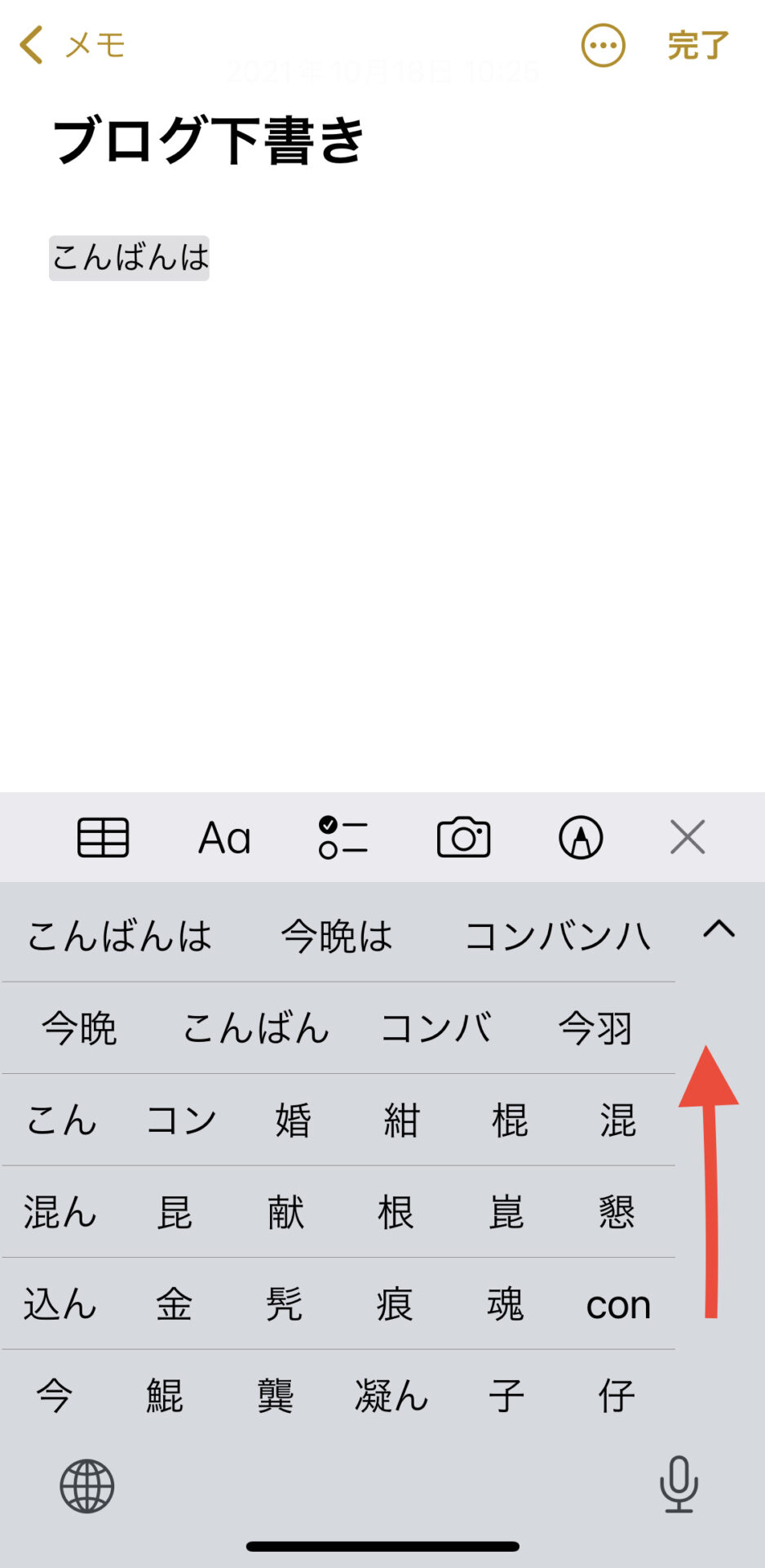 変換候補がさらに表示されます。このページを上にスライドしてください。